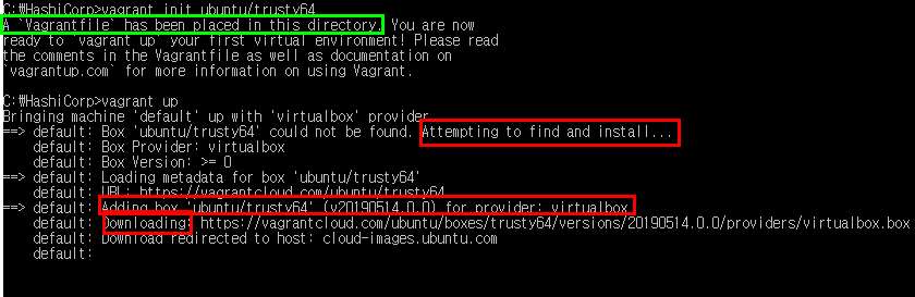 vagrant up (Hyper-V, VMware, Virtualbox 등 알맞은 가상머신 소프트웨어와 연결됨)