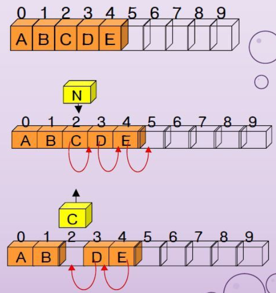 ※ M: 배열에서의 삽입/삭제는 원소를 한칸씩 당겨오는 작업 or 밀어내는 작업 이 필요하게된다.
