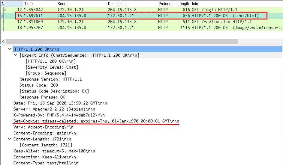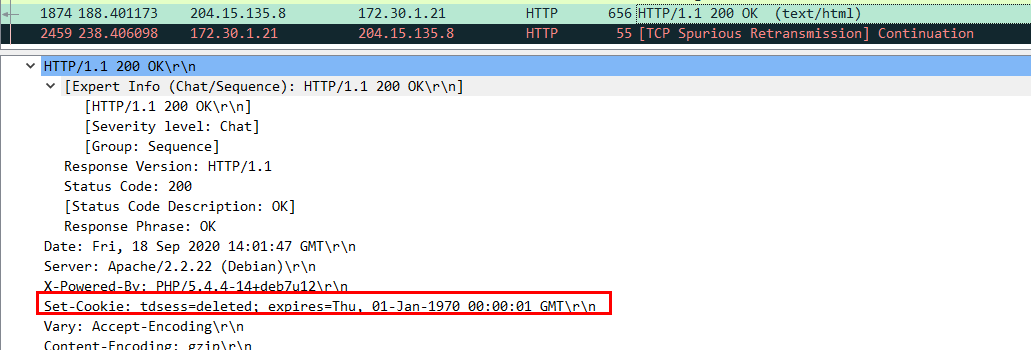 메인 페이지에 접속으로 응답하는 Set-Cookie 값 tdsess=deleted (삭제됨) 이다.