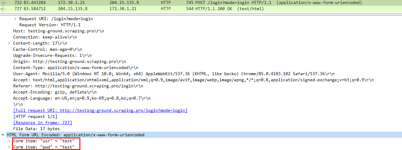 테스트 서버 페이지 : testing-ground.scraping.pro/login (Destination IP : 204.15.135.8)