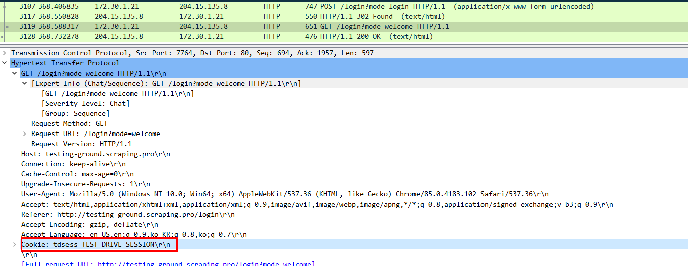 [HTTP Message 쿠키 분석 예제]