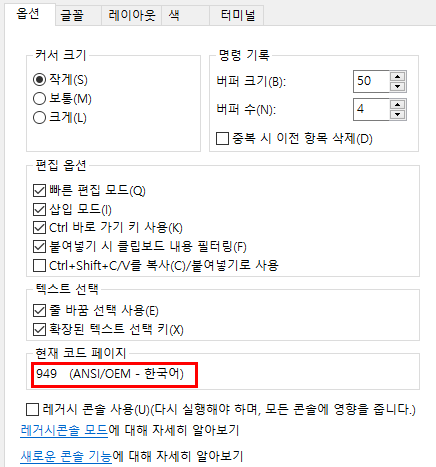chcp 949를 입력하면된다.