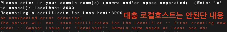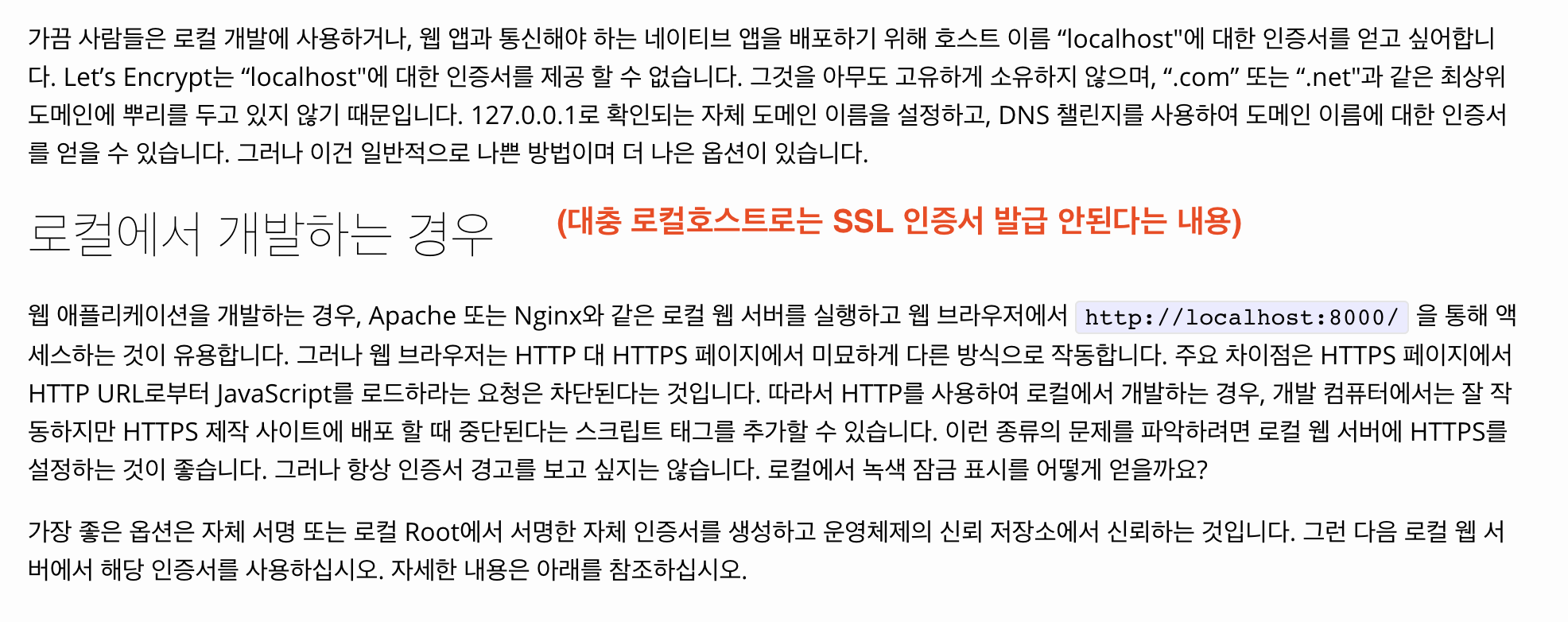 ⚠️ 도메인 'localhost' 에 대한 SSL 인증서는 발급되지 않는다.