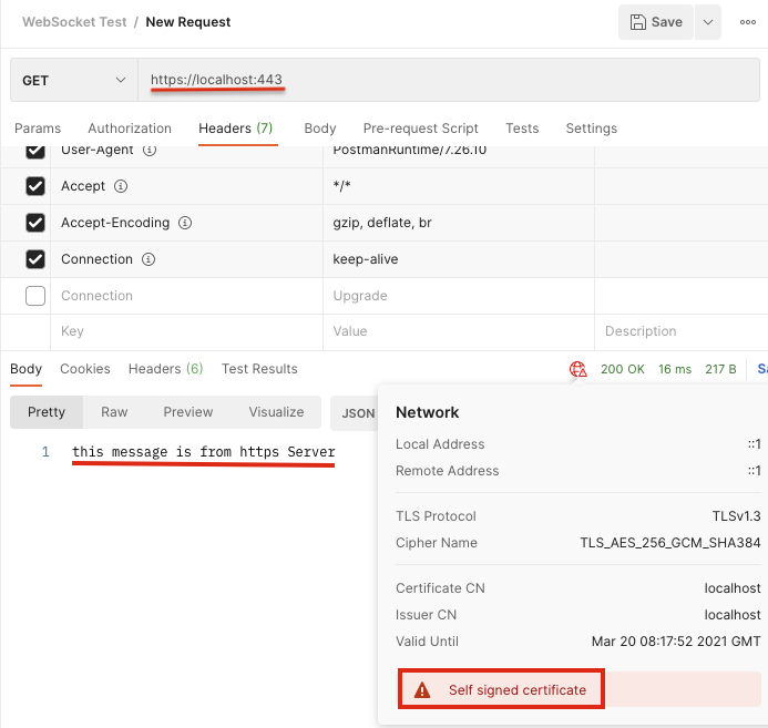 이제Postman 을 통해 https://localhost:443 으로 요청을 날려보자