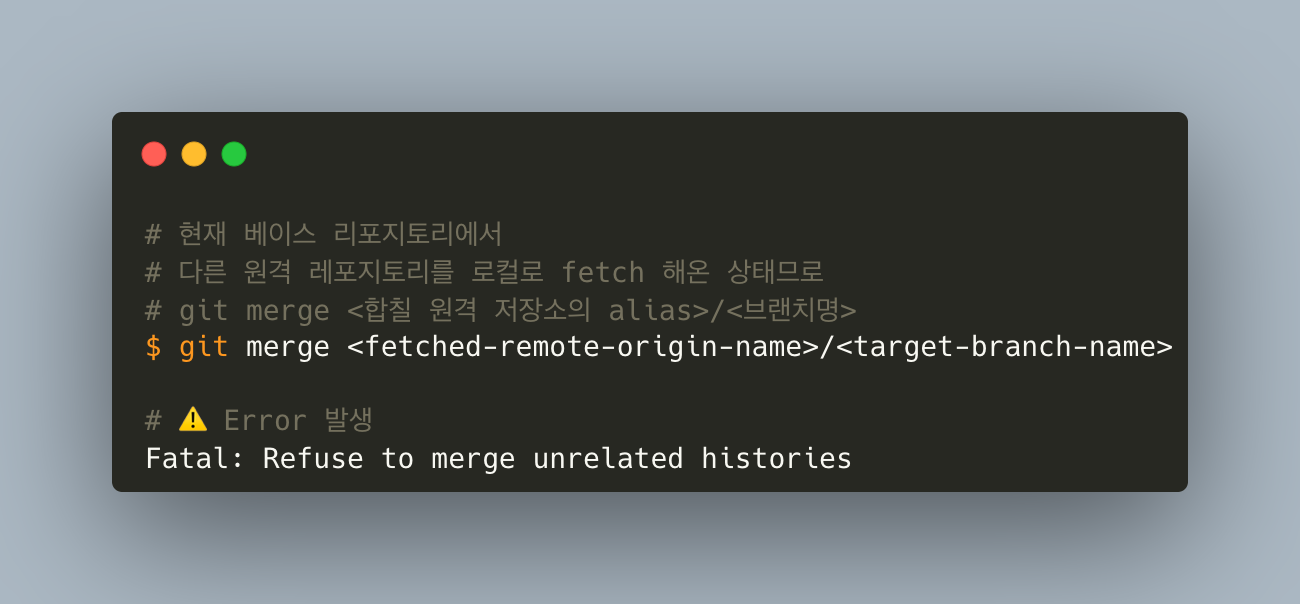 ⚠️ 서로 다른 저장소의 커밋 히스토리를