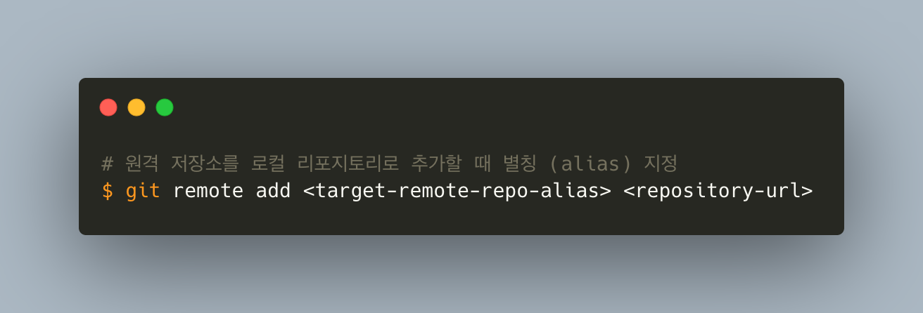 실제 원격 저장소를 제거하는게 아니라 local Repository 상에 등록된 원격 저장소 (Mapping 정보) 를 삭제하는 것이다.