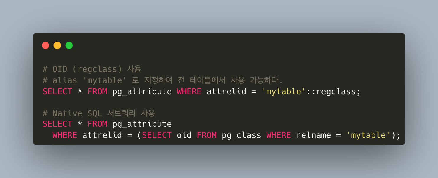 특정 시퀀스를 불러올 때 모두 `regclass` 키워드를 넣어 해당 시퀀스의 OID 값을 받아온다.