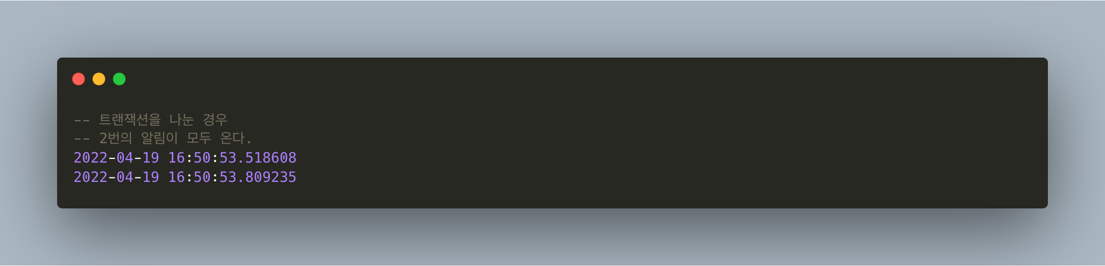 👉🏻 트랜잭션이 완결(COMMIT)되는 시점에만 알림이 푸시되고,