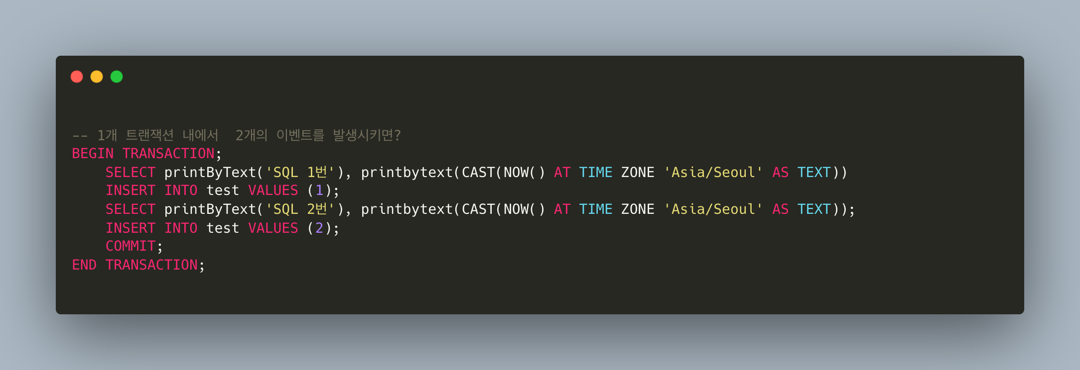 예제 1. 1개 트랜잭션 내에 2개의 트리거 발동 조건