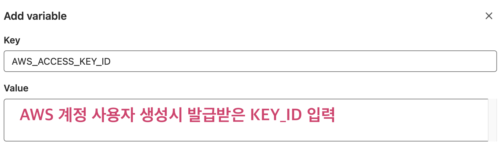 S3 μ λ‘λλ₯Ό μν΄μ AWS Credential μ 보λ₯Ό Gitlab - Settings - CI/CD - Variables μμ μ€μ νμ.