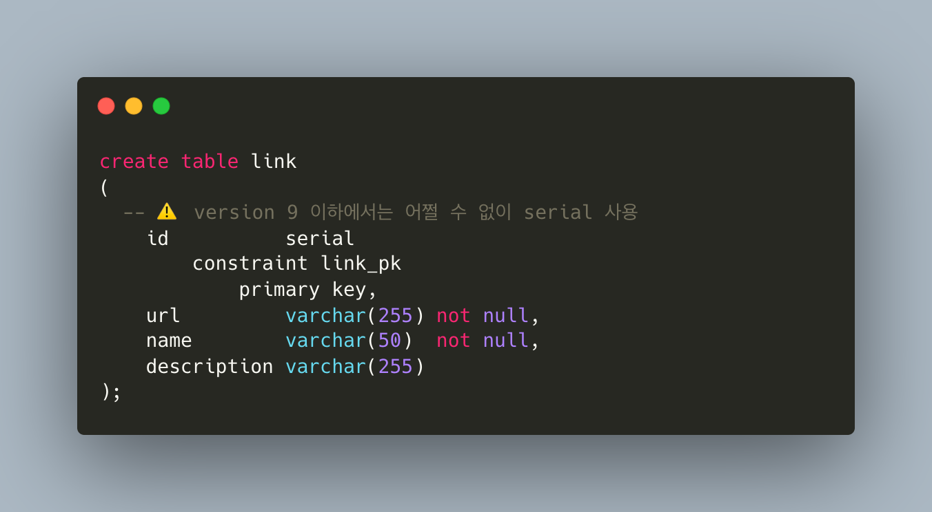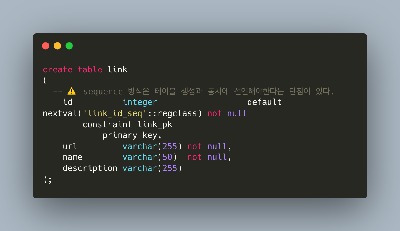 ✅ PostgreSQL version 10부터는 Identity 가 국룰이다.