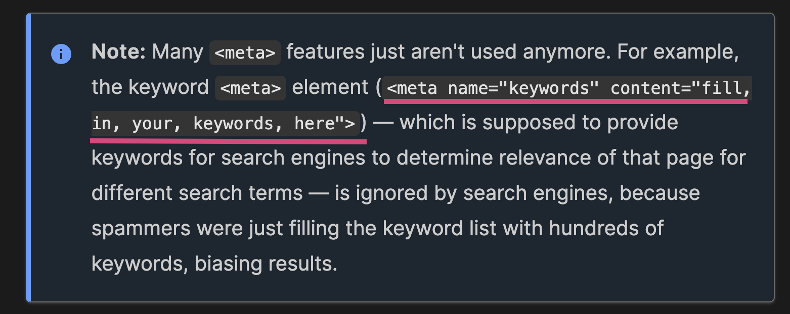 keywords 라는 name 은 효력이 없다.