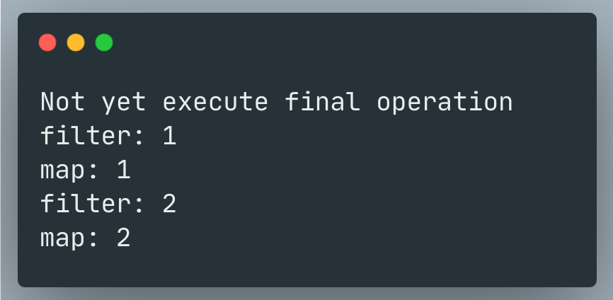 즉, 각 중간 연산을 실행하고 다음 중간 연산으로 넘어간다.