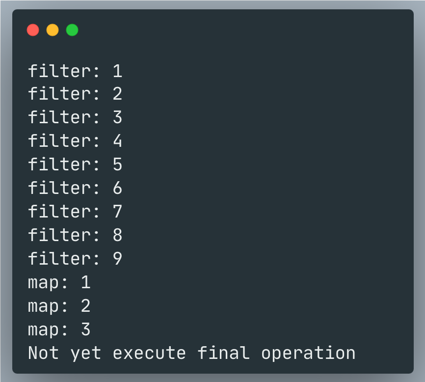 // 최종 연산 실행 전에 메시지가 출력된다.