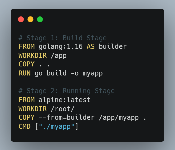 다음은 Build stage 와 Running Stage 를 구성한 예다.