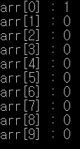 int arr[10] = {1}; // 10개 원소중 첫 원소만 1로 초기화 함.