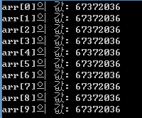 printf("arr[%d]의 값: %d\n", i, arr[i]);