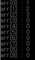 만약 arr[10] = {1, } 이라고 작성했다고치면