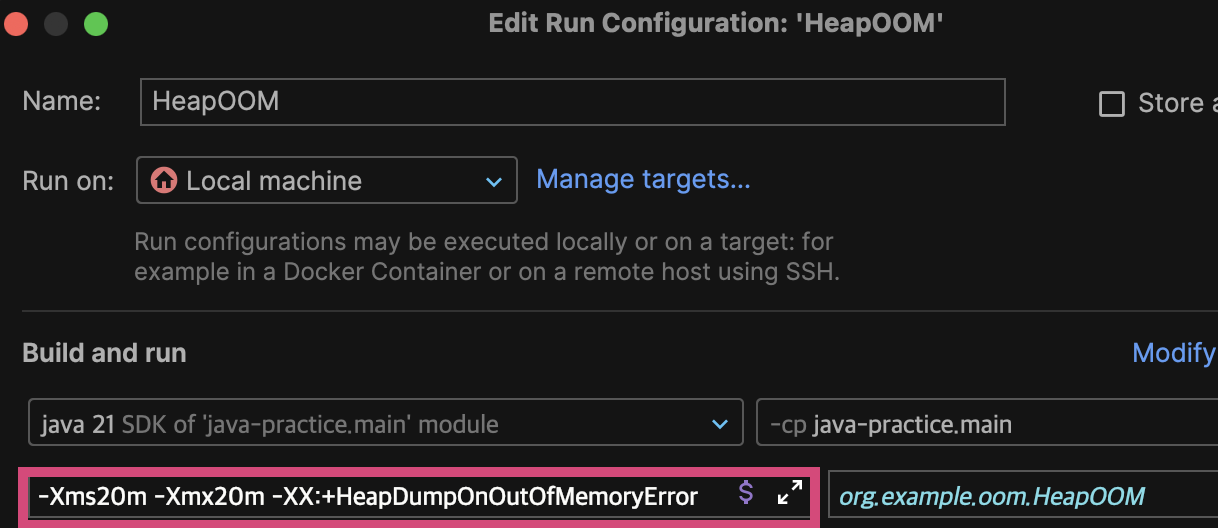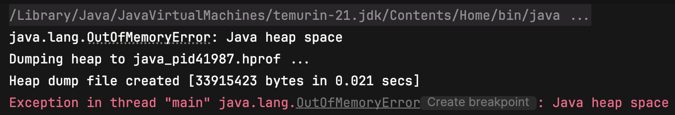 -Xms20m -Xmx20m -XX:+HeapDumpOnOutOfMemoryError