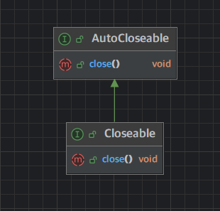 Closeable 을 구현한 클래스에서도 try-with-resources 를 지원하기 위해 Closeable 은 AutoCloseable 을 상속받는다.
