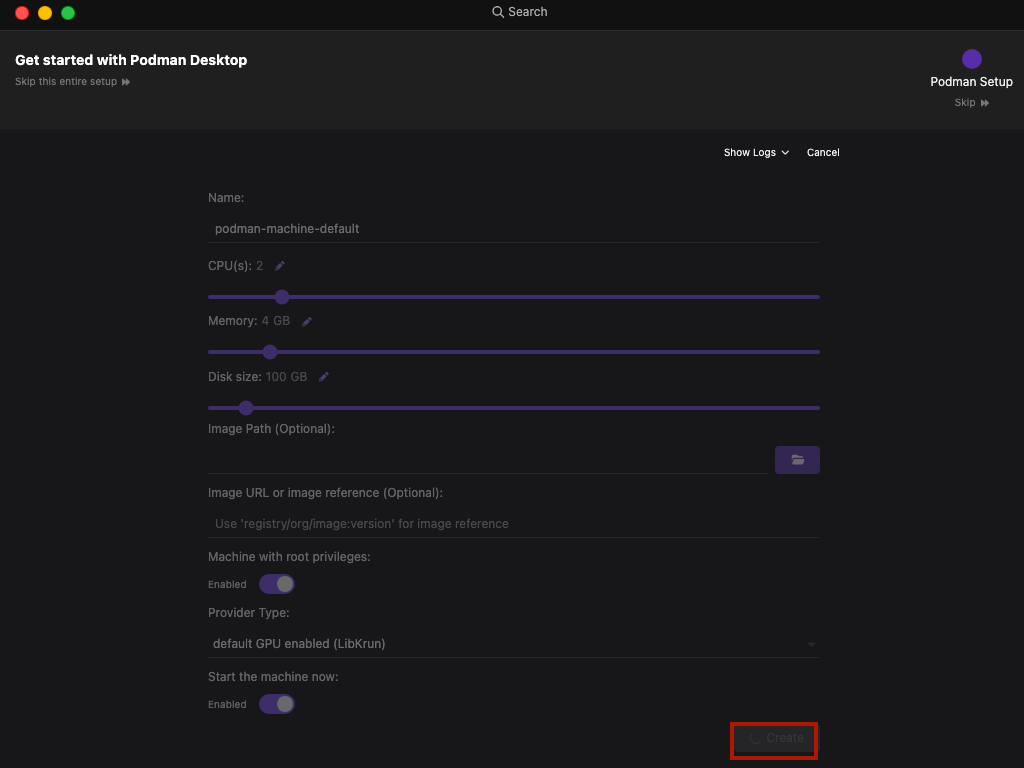 (4) Podman machine 시작