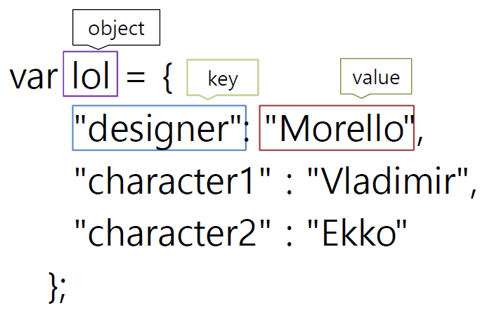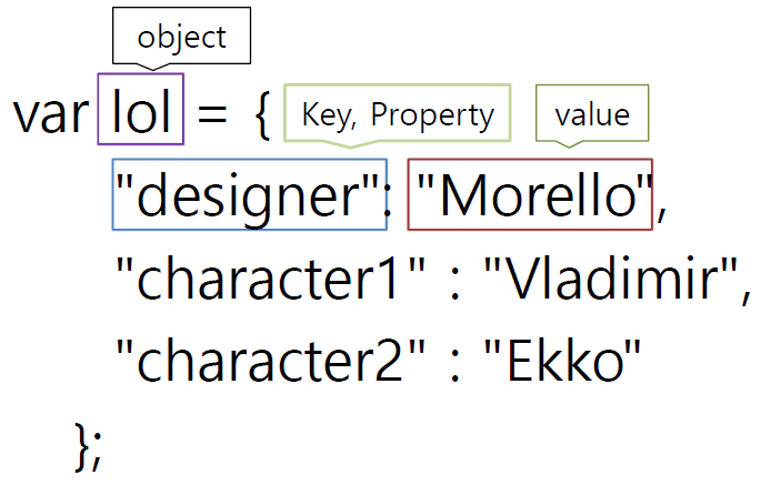 ObjectName["keyName"] = " "; // 선언 및 초기화