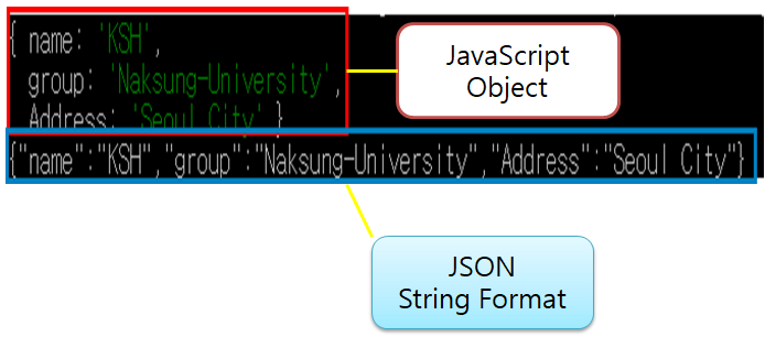 // stringify() : Javascript 객체를 JSON 문자열로 변환